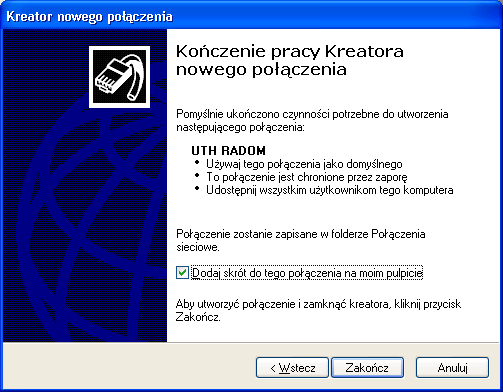 Dodajemy skrót na pulpit i klikamy zakończ.