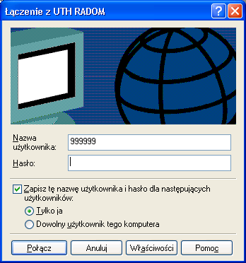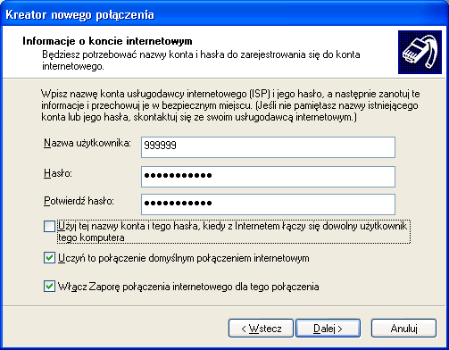 Zaznaczamy Połącz używając połączenia szerokopasmowego, wymagającego nazwy użytkownika i hasła, po czym przechodzimy dalej.
