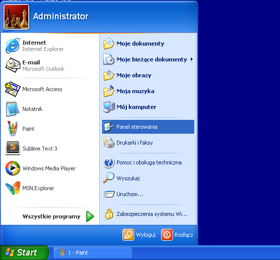 Otwieramy menu Start i wchodzimy w Panel Sterowania.