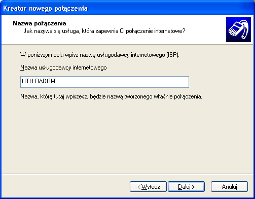 Uzupełniamy nazwę dla tworzonego połączenia.